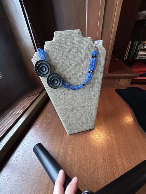 Vintage beads combine with different size black beads to create a one-of-a-kind piece. Be rhapsodic!